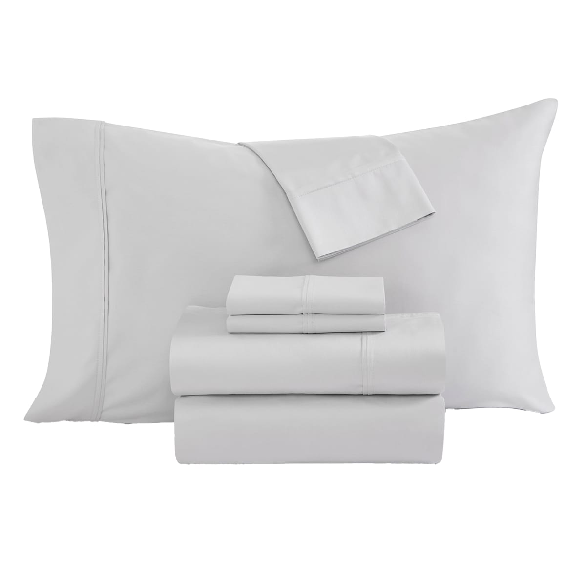 Providence 6-Piece Light Grey 100% Egyptian Cotton Sateen Sheet Set, Queen