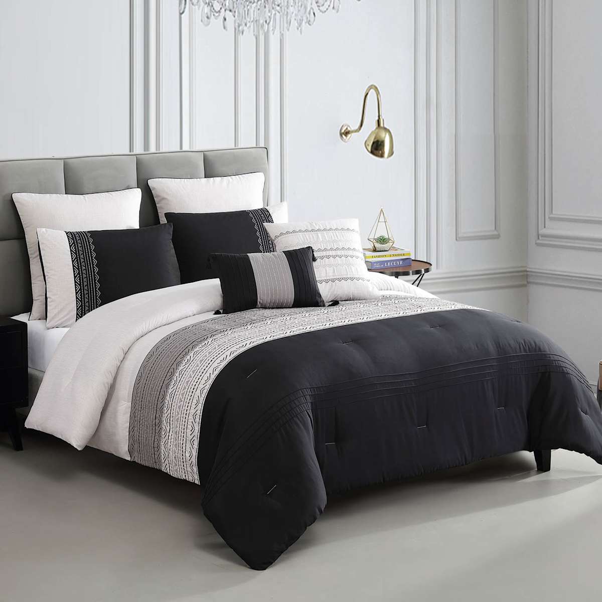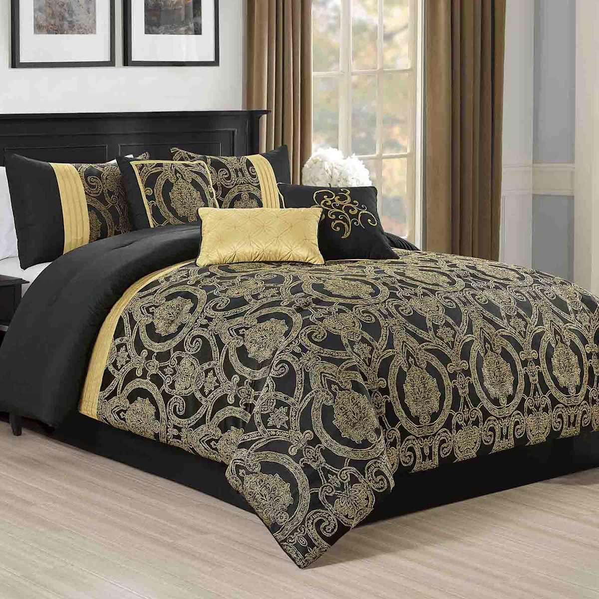 7-Piece Wayland Black & Yellow Comforter Set, Queen
