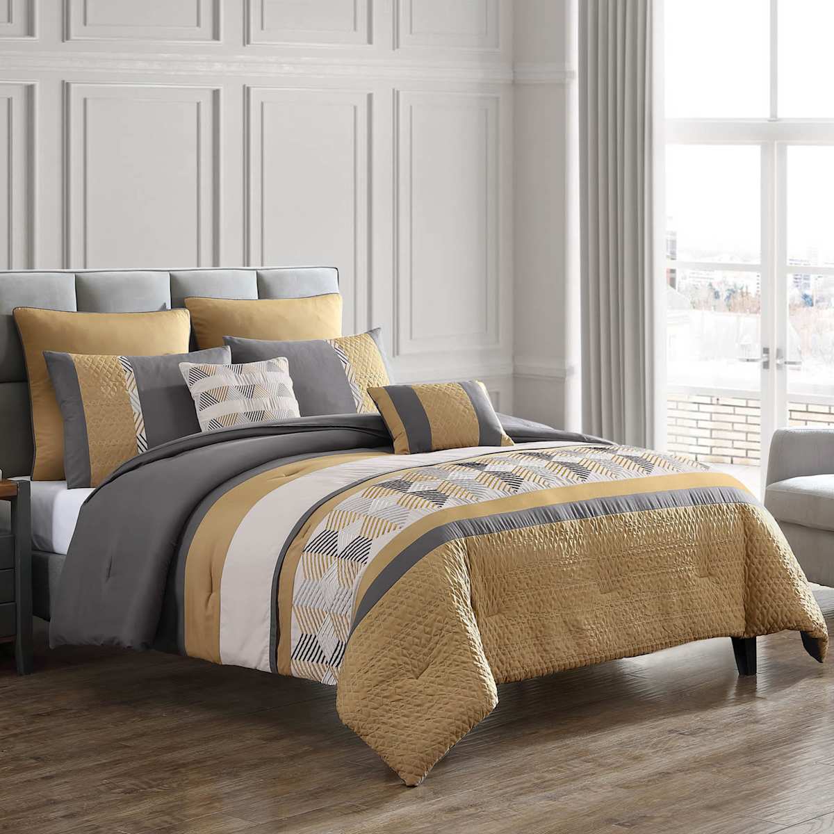 7-Piece Davin Yellow & Grey Comforter Set, Full/Queen