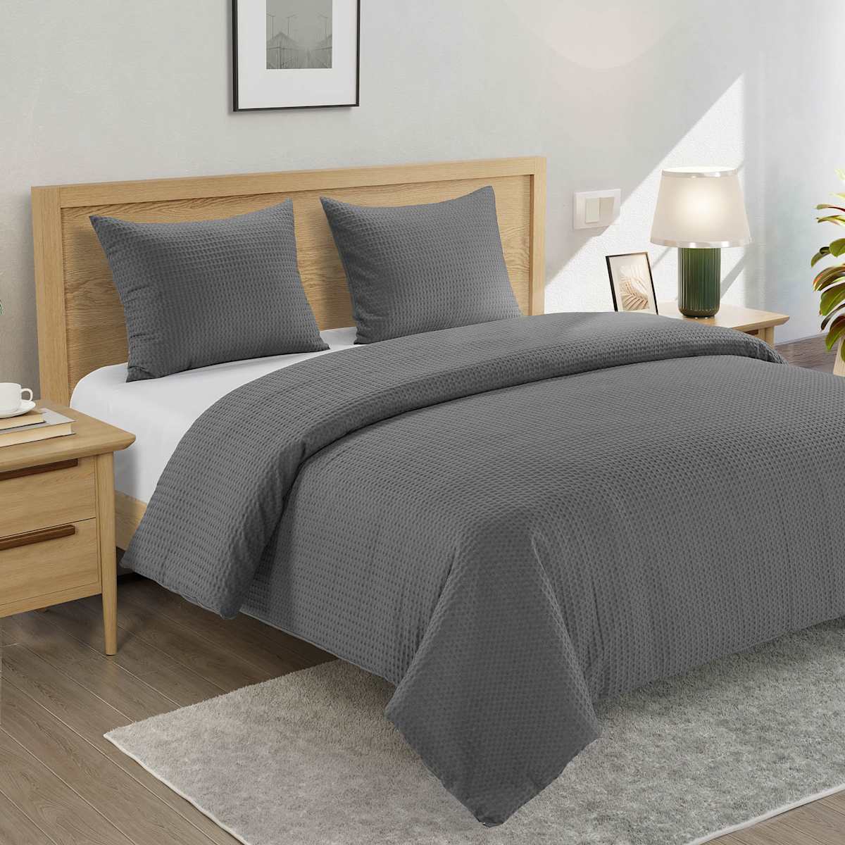 Crosby St. 3-Piece Grey Washed Cotton Waffle Duvet Set, King