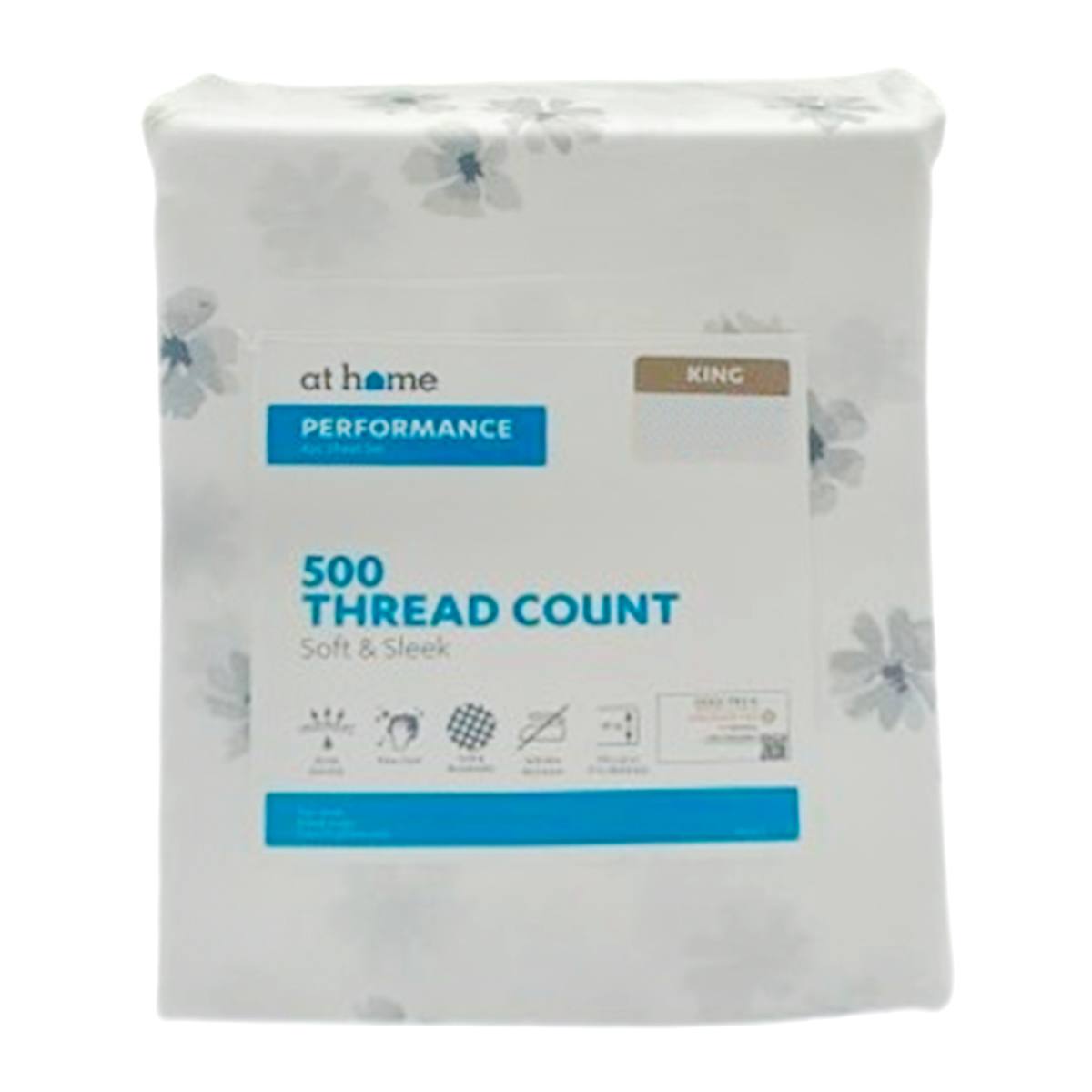 4-Piece White Floral Print 500 Thread Count Cotton Blend Sheet Set, King