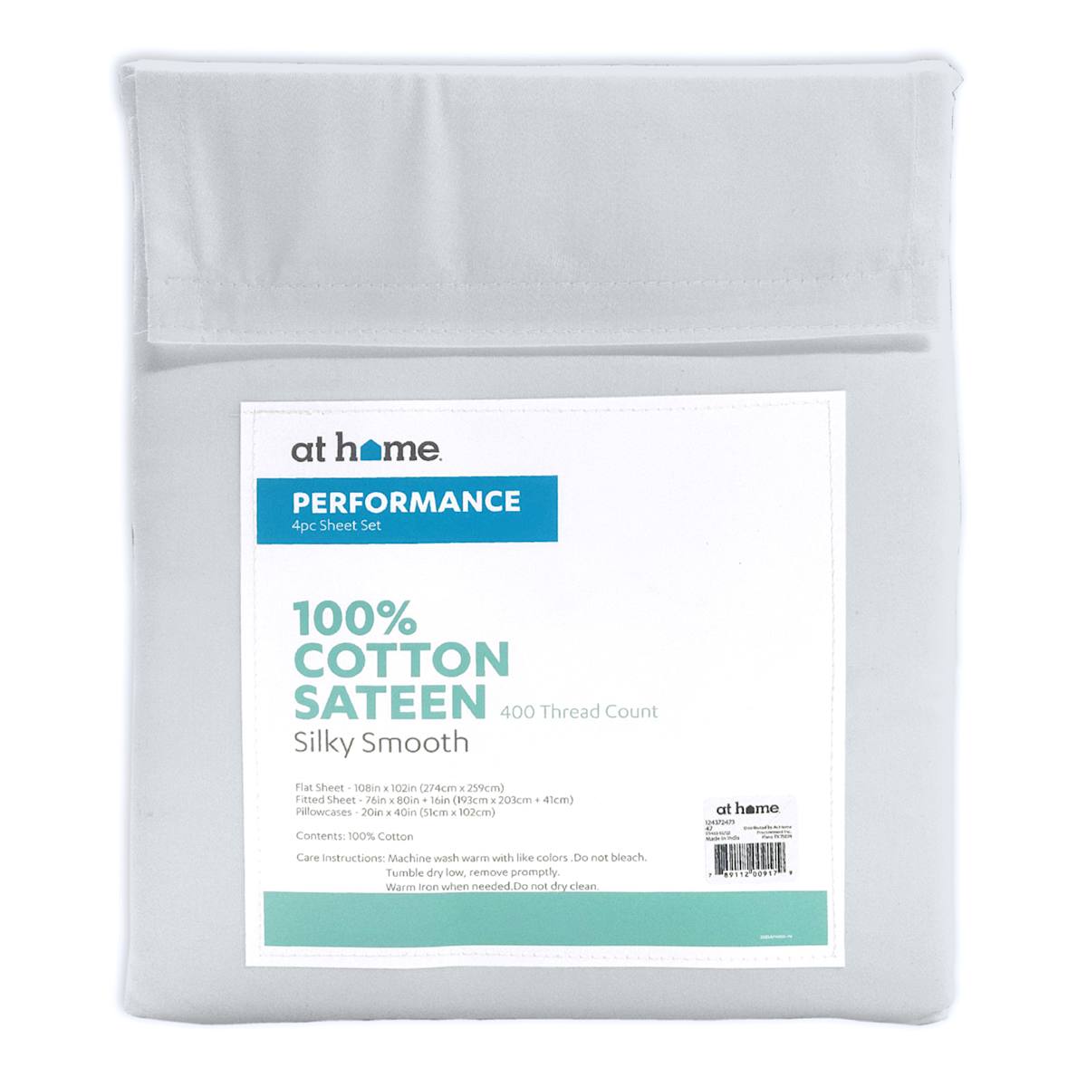 4-Piece Grey 400 Thread Count Cotton Performance Sheet Set, King