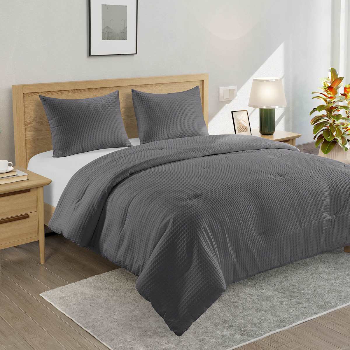 Crosby St. 3-Piece Grey Washed Cotton Waffle Comforter Set, Full/Queen
