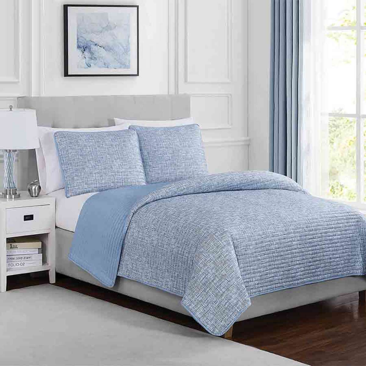3-Piece Blue Washed Microfiber Quilt Set, King