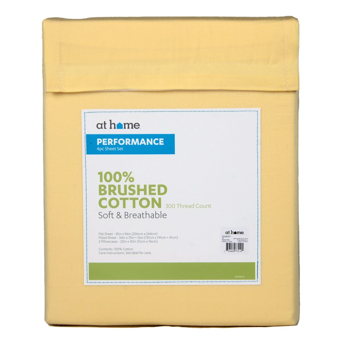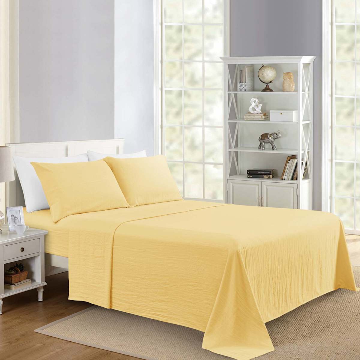 4-Piece Yellow 300 Thread Count 100% Brushed Cotton Percale Sheet Set, Full