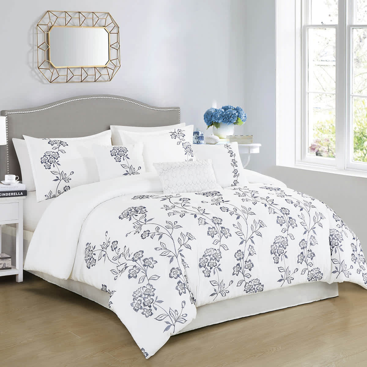 7-Piece Josephine White Floral Design Comforter Set, Queen
