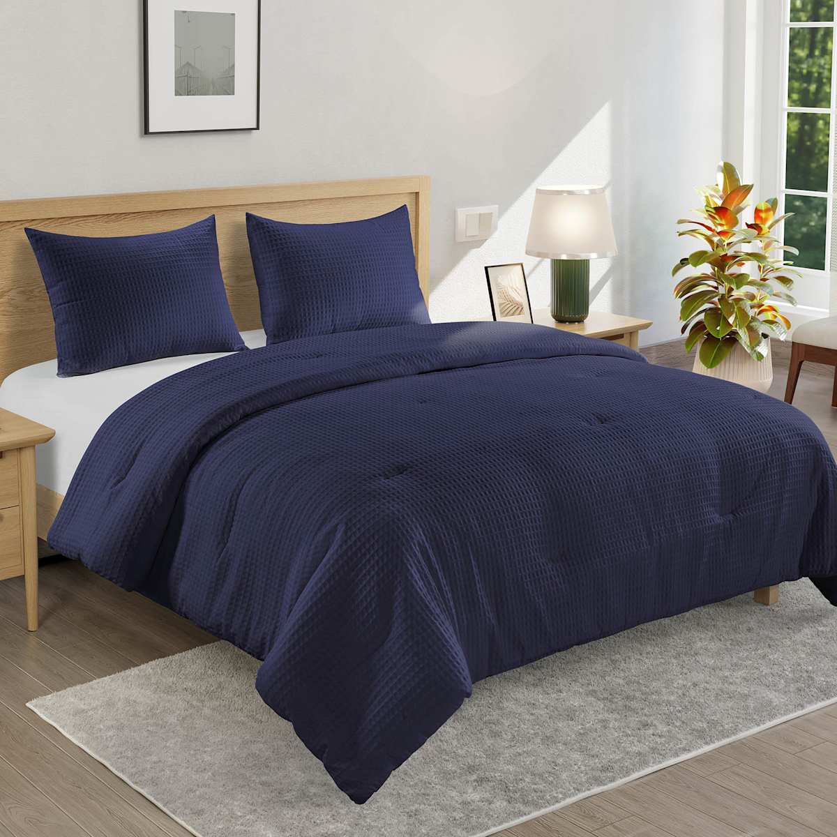 Crosby St. 3-Piece Navy Blue Washed Cotton Waffle Comforter Set, King