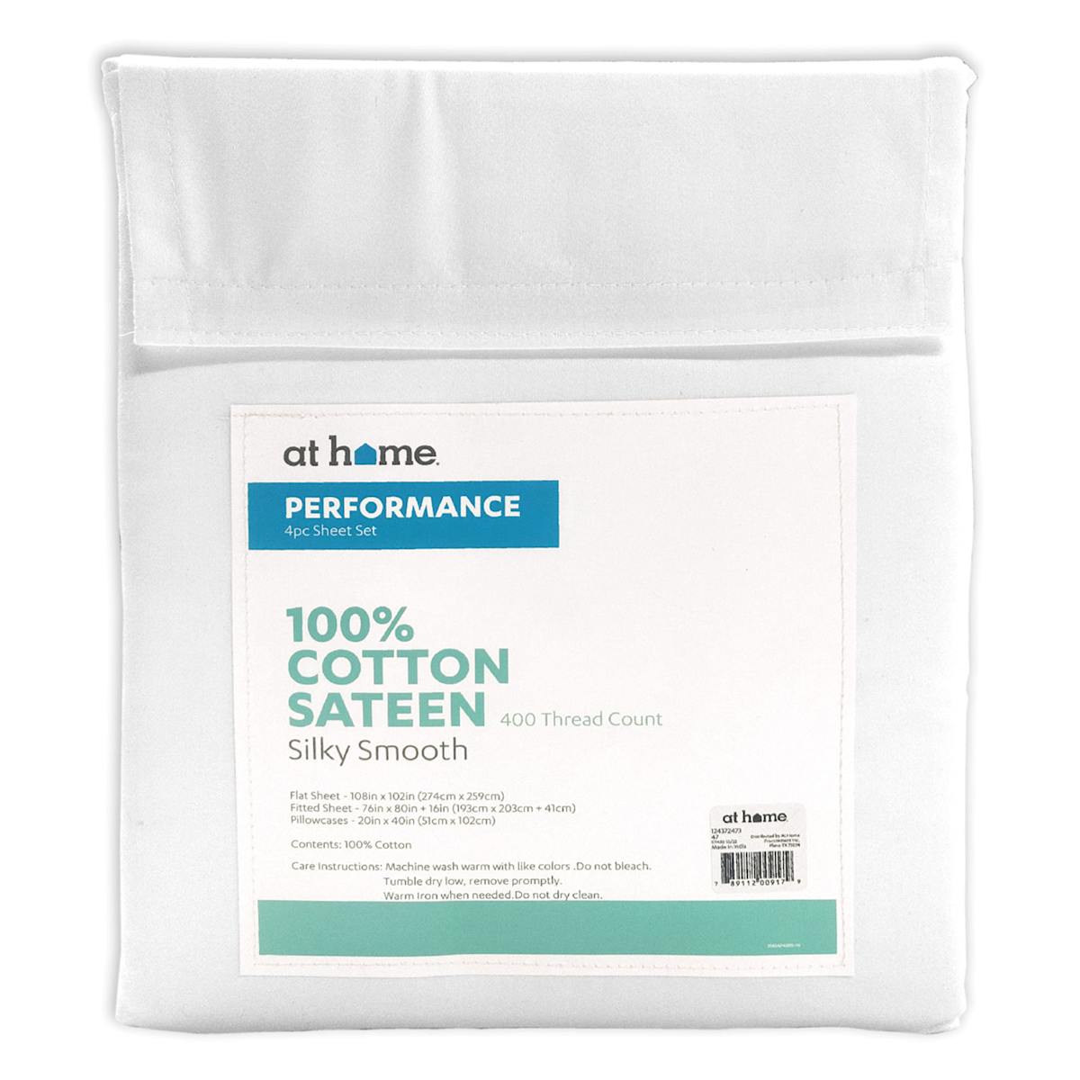 4-Piece White 400 Thread Count Cotton Performance Sheet Set, King