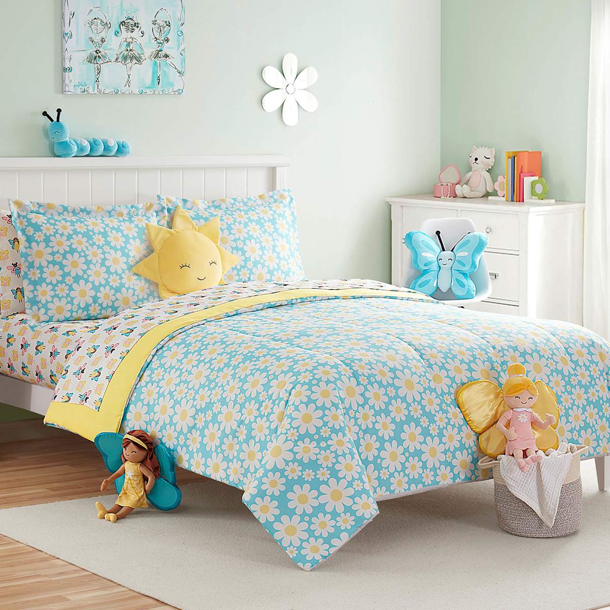 Tiny Dreamers 2-Piece Fairy Garden Blue Daisy Print Comforter Set, Twin