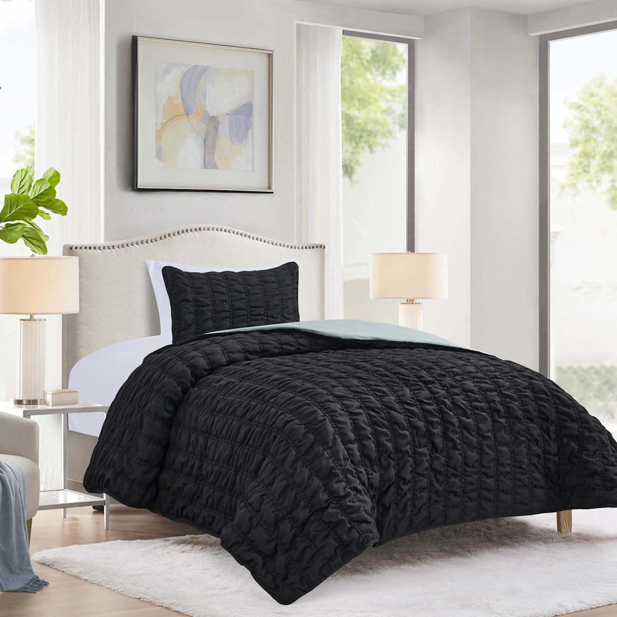 2-Piece Black Channel Microfiber Quilt Set, Twin/Twin XL