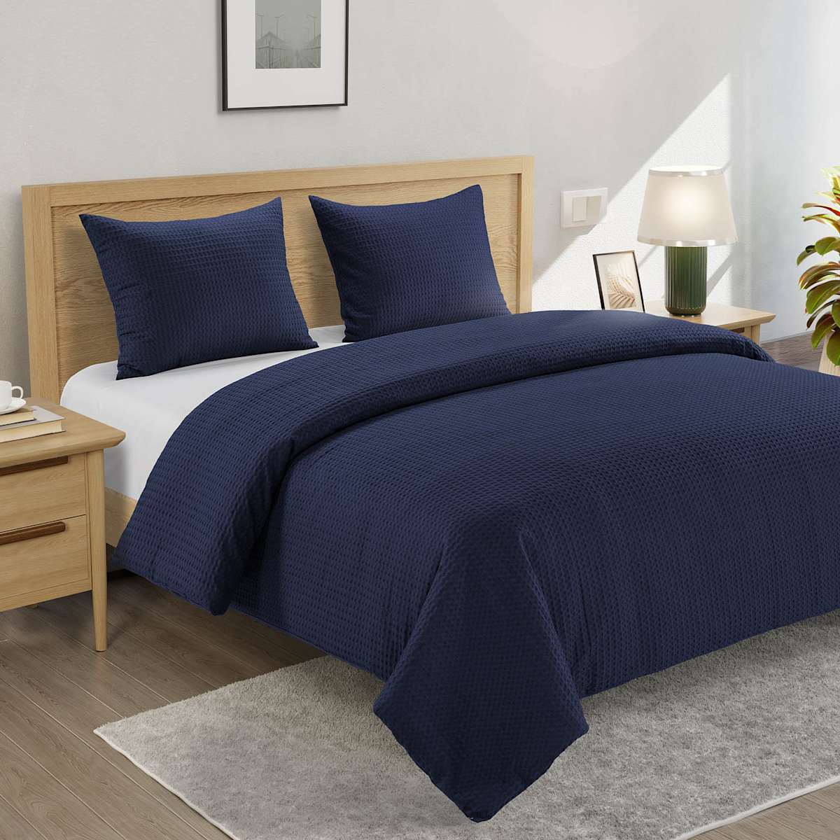 Crosby St. 3-Piece Navy Blue Washed Cotton Waffle Duvet Set, King