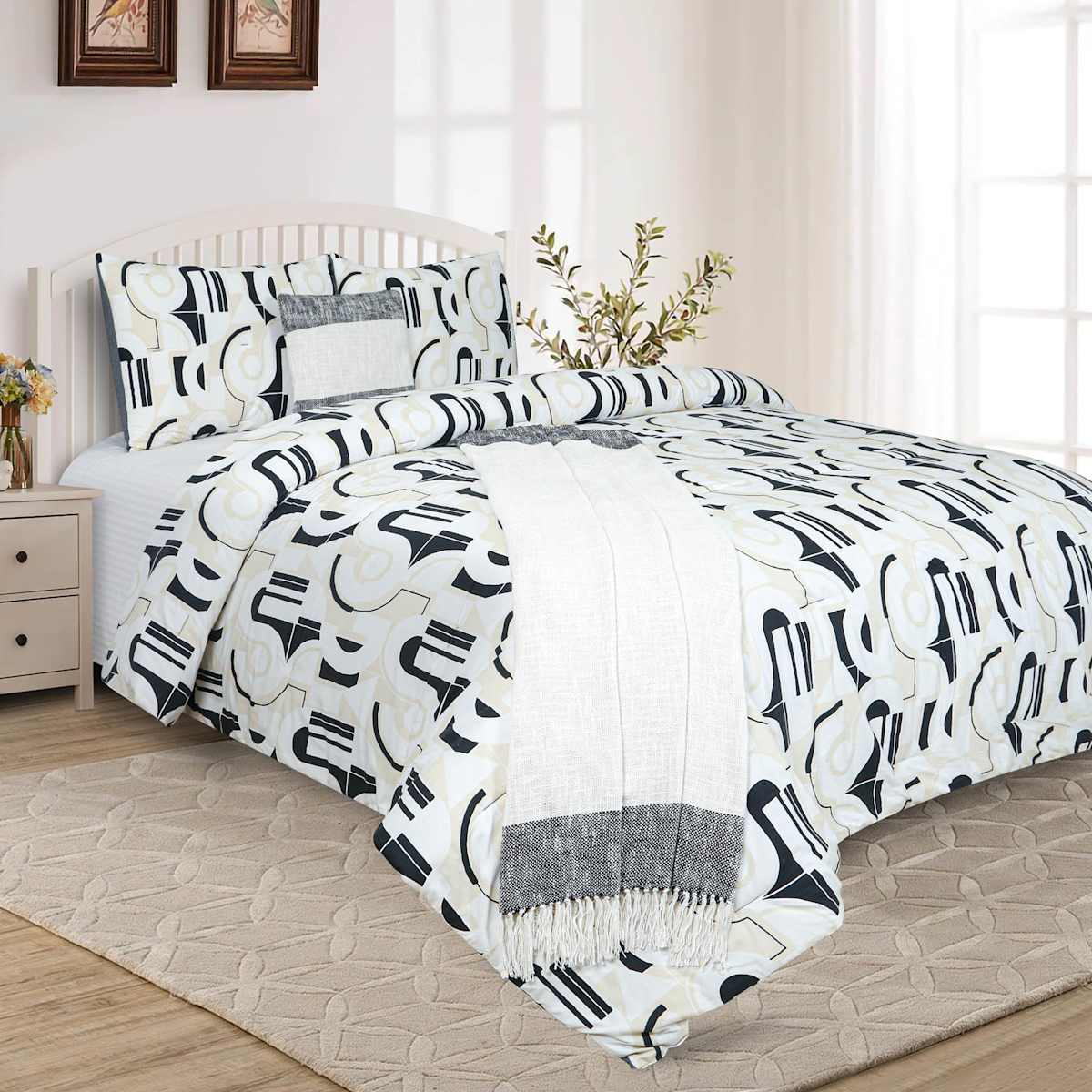 Crosby St. 5-Piece Modern Geo Printed Comforter Set, Full/Queen