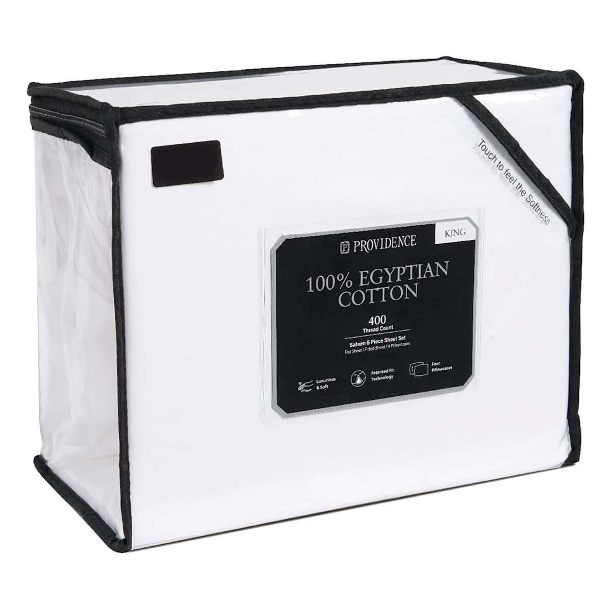Providence 6-Piece White 100% Egyptian Cotton Sateen Sheet Set, King