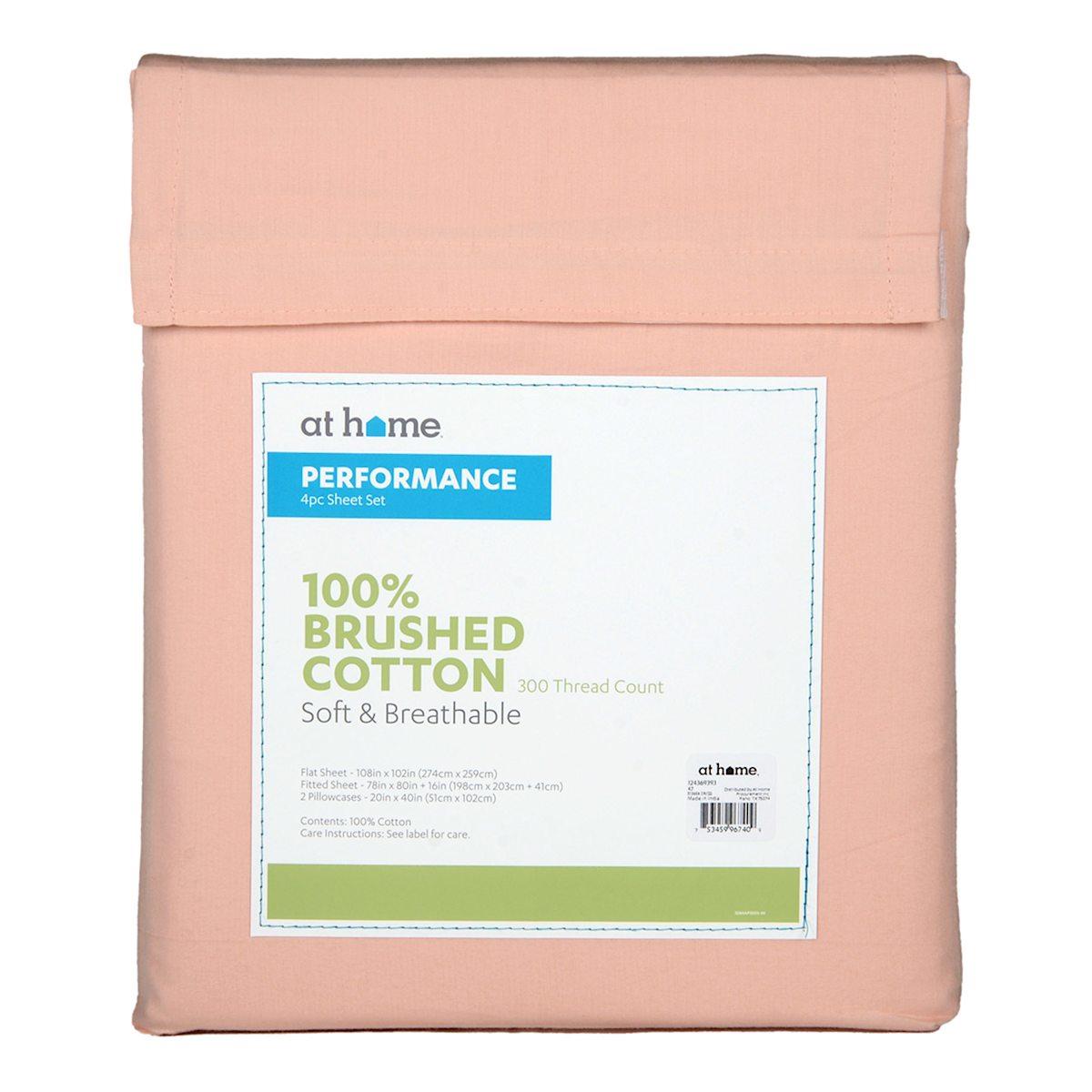 4-Piece Pink 300 Thread Count 100% Brushed Cotton Percale Sheet Set, King