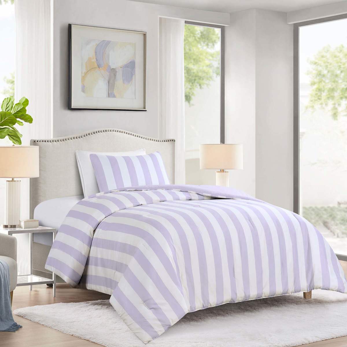 Tiny Dreamers 2-Piece Purple Cabana Stripe Comforter Set, Twin/Twin XL