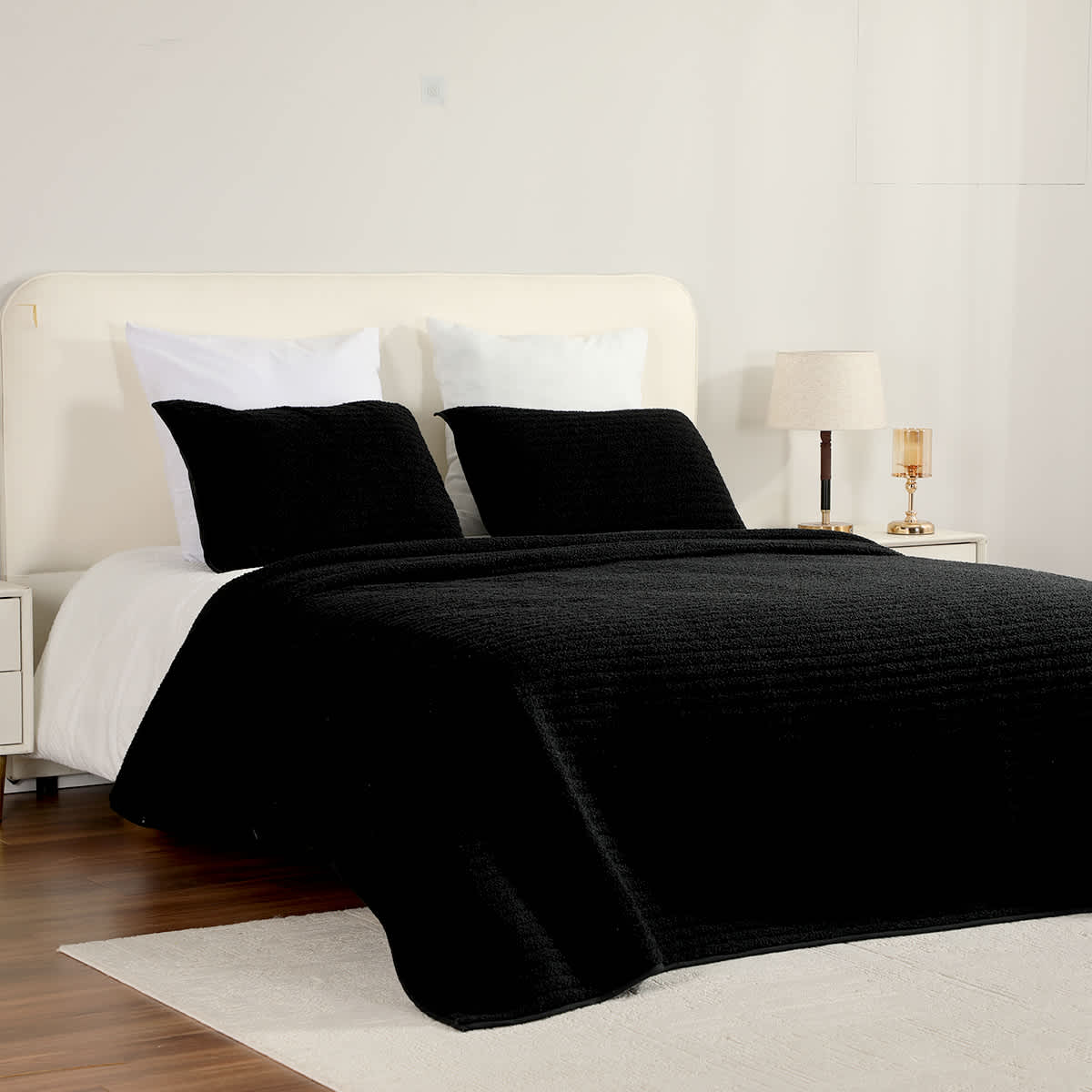 Crosby St. 3-Piece Black Boucle Quilt Set, Full/Queen