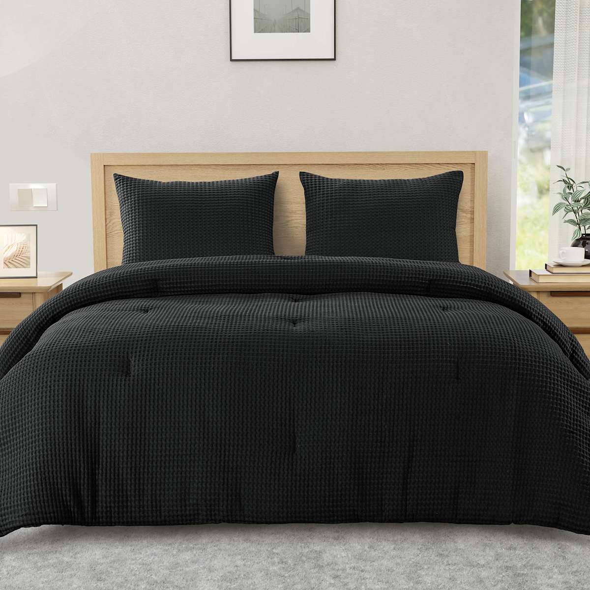 Crosby St. 2-Piece Black Waffle Comforter Set, Twin/Twin XL