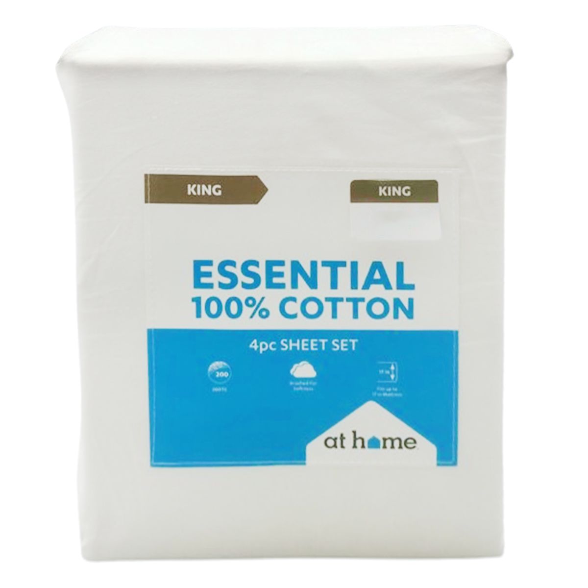 4-Piece White 200 Thread Count Brushed Cotton Sheet Set, King