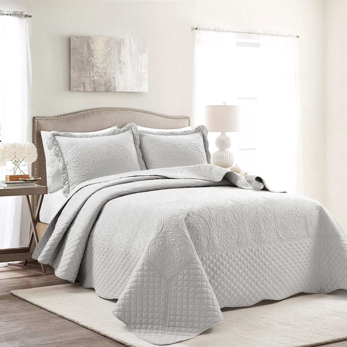 Found & Fable 3-Piece Grey Medallion Scalloped Bedspread Set, King