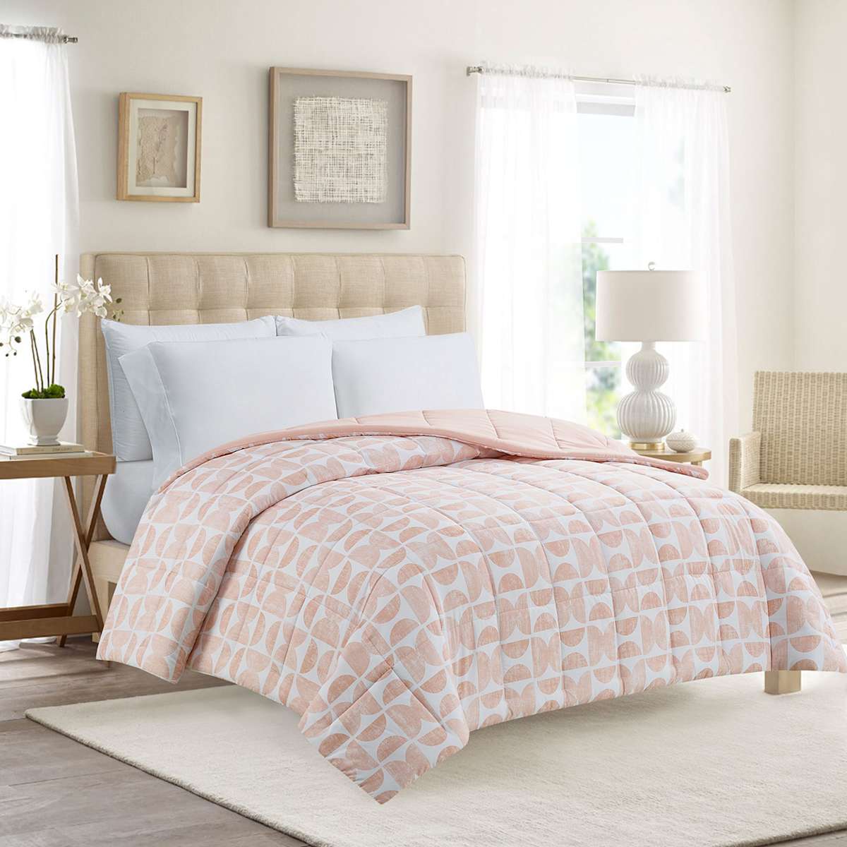 Pink Geo Print Reversible Brushed Microfiber Comforter, Twin/Twin XL