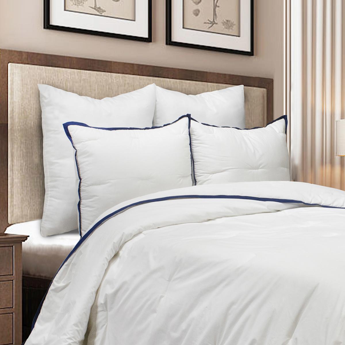 3-Piece White Cotton Hotel Border Comforter Set, King